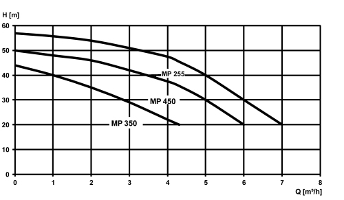 •電機外殼采用鋁合金; MP350型號為不銹鋼 •由耐用的塑料制成的葉輪和擴散器 •密封采用機械密封 •吸入和排出口徑1“ •吸程高達8.5米